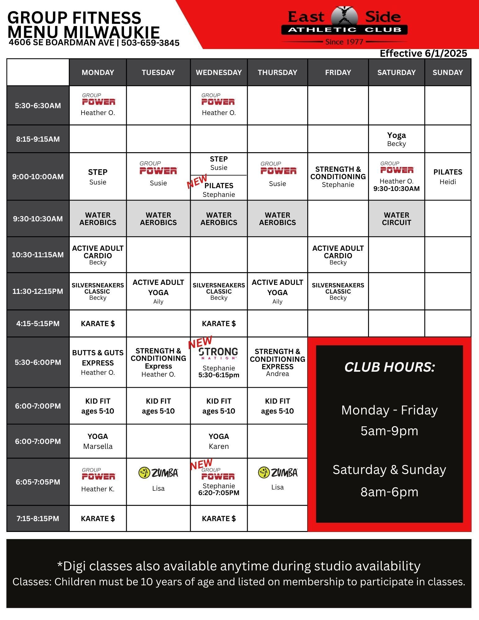We offer a world-class line up of dynamic group fitness classes with something for every fitness level and interest. Our classes are newly choreographed every few months, with fresh moves and music so there’s always something new to keep your workouts fresh and motivating!